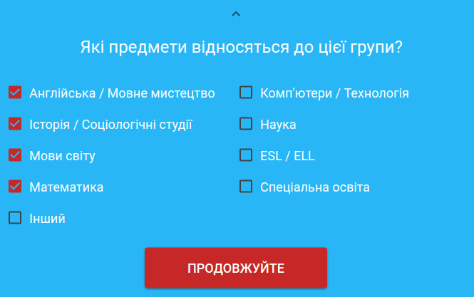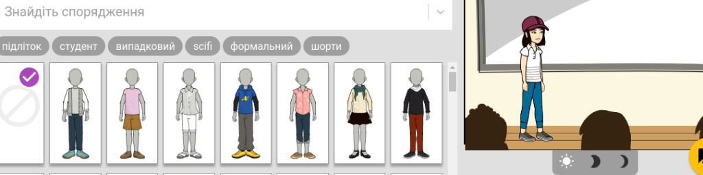 Починаючи роботу, вам потрібно обрати для якого класу та дисципліни ви плануєте створювати комікси. Можливо обрати відразу декілька. Просто натисніть на відповідні місця на інтерактивній дошці.